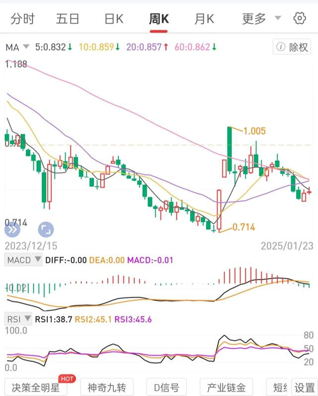 日线级别连续四周震荡下跌。在日线级别急跌大跌至三指标低洼同频可作为买入区间。